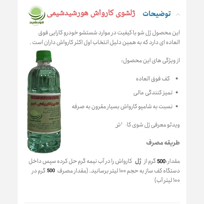 شامپو فوم کارواش هورشیدشیمی