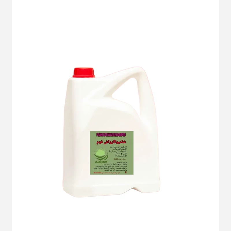 "شامپو فوم کارواش هورشیدشیمی 4 لیتری، ترکیب 1 به 100 با آب، تمیزکنندگی عالی و کف فراوان. مناسب برای بدنه خودرو و قیمت اقتصادی."