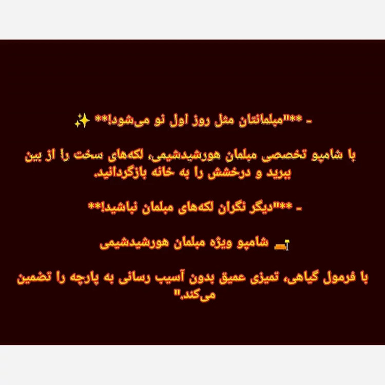 **شامپو تخصصی مبلمان [هورشیدشیمی]** راهحل جادویی برای احیای زیبایی مبلمان شماست!