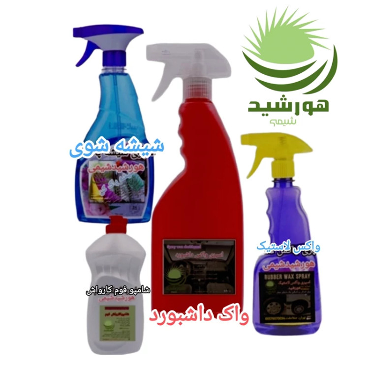 "پک کامل شوینده خودرو هورشیدشیمی شامل 4 محصول: واکس داشبورد، واکس لاستیک، شیشهپاککن و شامپو کارواش. قیمت اقتصادی و کیفیت عالی."