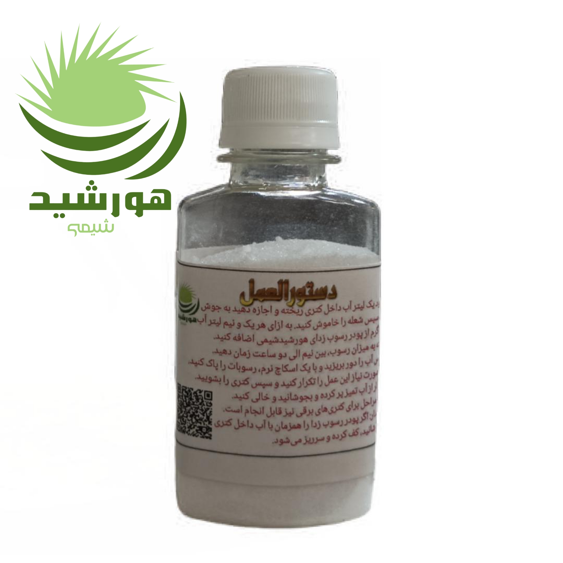به ازای هر یک و نیم لیتر آب 100 گرم از پودر رسوب زدای هورشیدشیمی اضافه کنید.