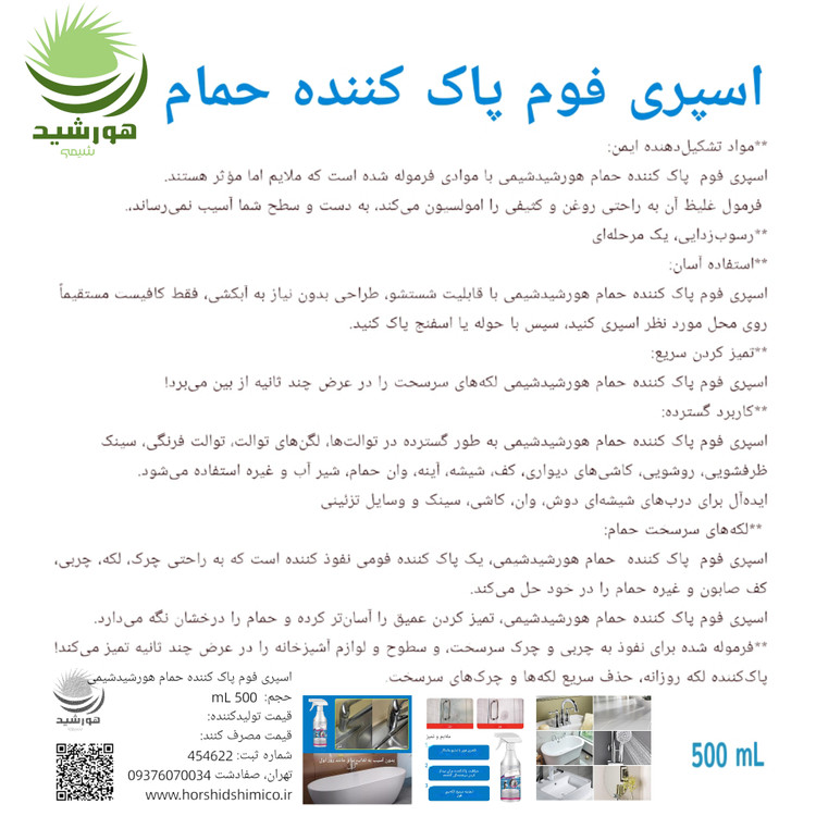 اسپری فوم پاک کننده حمام هورشیدشیمی