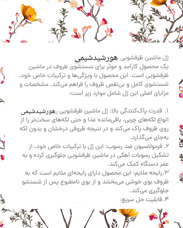 ژل ظرفشویی ماشینی هورشیدشیمی